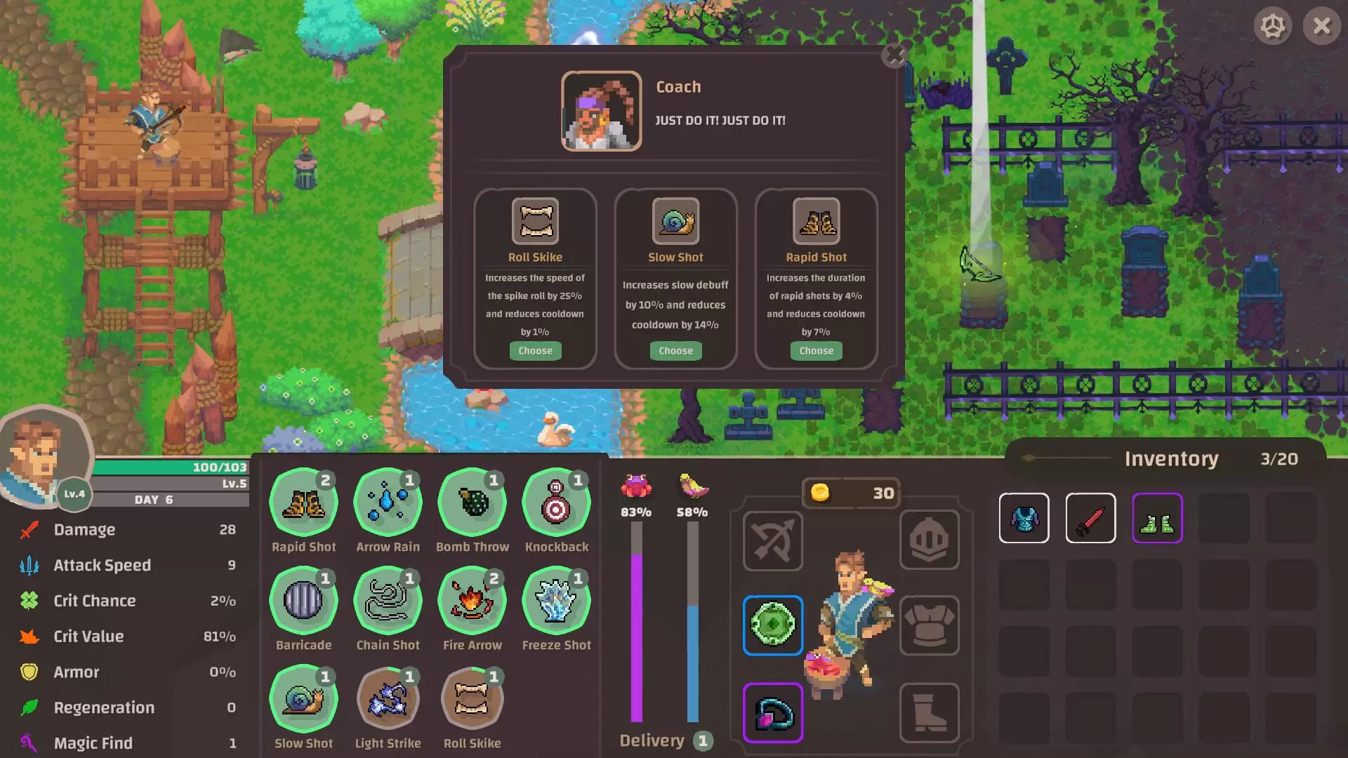 Village Defenders——一款惊险刺激的像素风 2D Roguelike 游戏,你需要制定策略,保护你的村庄免受一波又一波的亡灵侵袭。积累经验,解锁强大技能,并抵御怪物入侵,保卫你的家园!你能守住防线,拯救村庄吗?