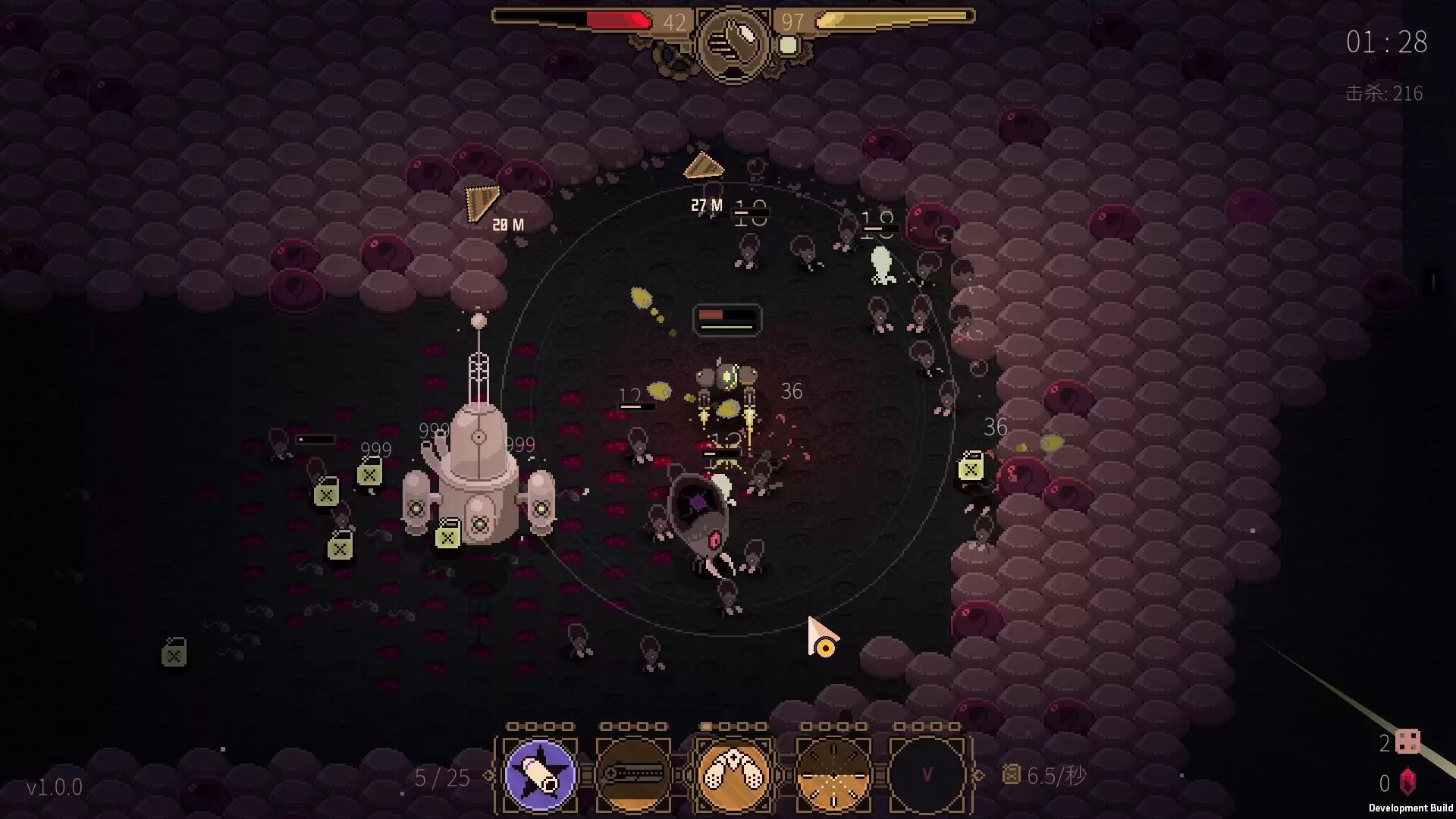 一款包含外星虫群与机甲的动作类 Roguelite 游戏。穿越不断扩散并进化、潜藏着敌人的细胞群,与敌人战斗开辟前路。收集改变玩法的技能与升级,打造独一无二的构筑。