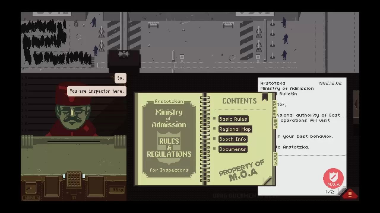 作为移民检查员,您的工作是控制从科莱基亚进入格雷斯廷阿尔斯托茨坎一侧的人流。在成群结队的移民和寻找工作的游客中,隐藏着走私者、间谍和恐怖分子。