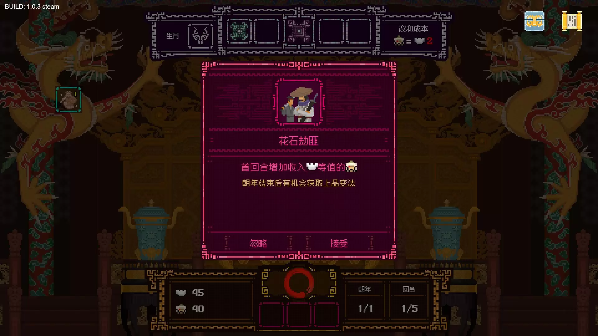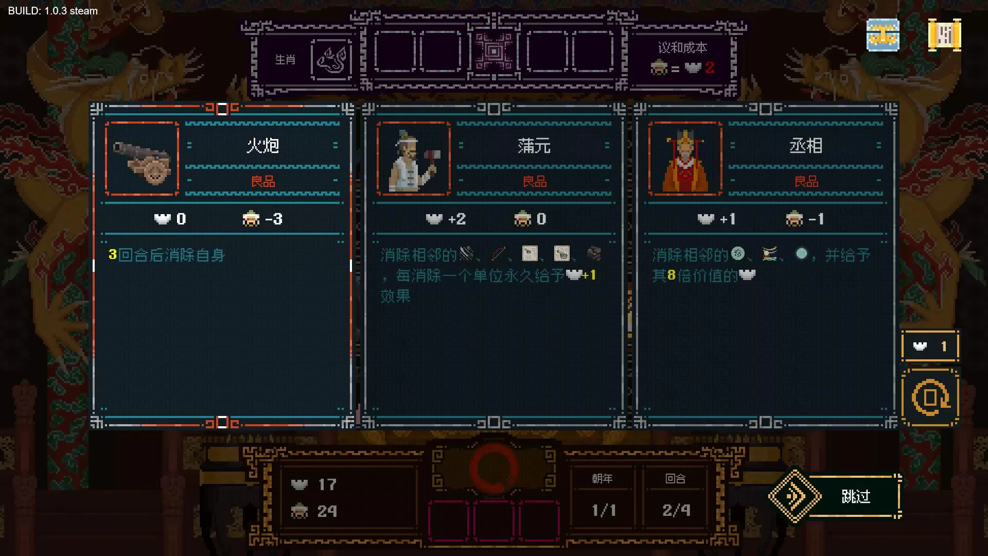 这是一款肉鸽卡牌筑造游戏。 在这片江山下,皇上需通过选择各式卡牌加入牌组,用英明的决策应对不同年份和朝变而造成的影响。不断增强国力,维护国朝安邦,抵御外敌入侵。 江山如此多娇,但是非福祸也很多...愿皇上一路buff叠满,国祚绵延,万世千秋。