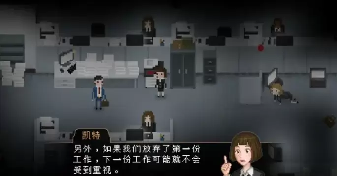 雅皮士精神是一款像素风格的恐怖冒险游戏,在游戏中玩家将扮演一位名叫布莱恩·帕斯特纳克的年轻人,今天是你入职公司的第一天,忐忑不安的你进入了公司,未知的恐怖事件在等待着你。 在帕斯特纳克不同寻常的入职培训中,他发现了新工作的真相。在公司成立的初期,一个女巫的力量让公司取得了成功,但是现在她回来讨债了。布莱恩会遇见千奇百怪的角色,惊悚可怖的生物,然后解开辛特拉集团的黑暗秘密。 当布莱恩·帕斯特纳克踏入世界上最大的公司——辛特拉集团的大门时,他心中充满了不安和自我怀疑。作为新人,他感到自己似乎完全无法胜任这个充满挑战的工作环境。
