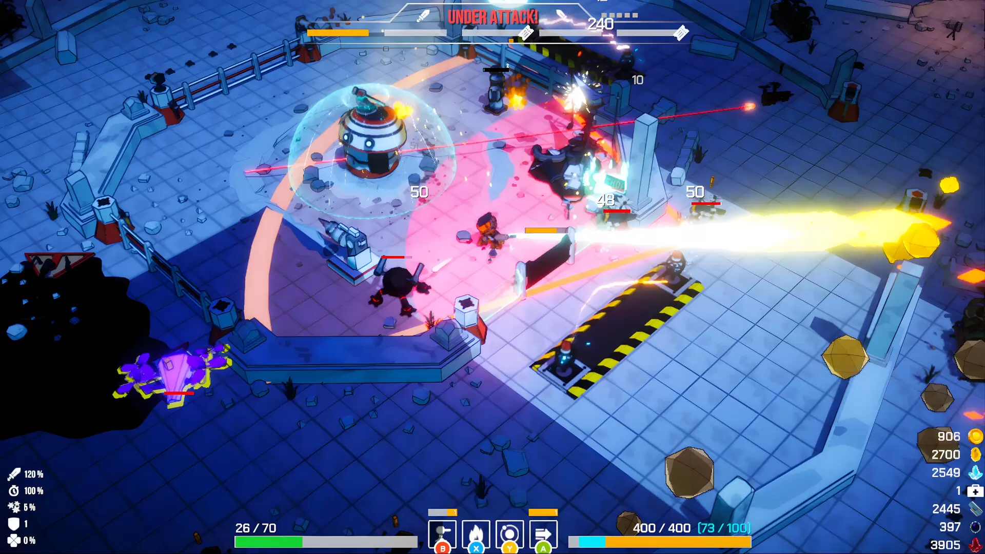 一款带有基地防御要素的混乱 Roguelite 双摇杆射击游戏。支持最多 4 人联机,探索、变强、保卫飞船,然后离开这个该*的星球!