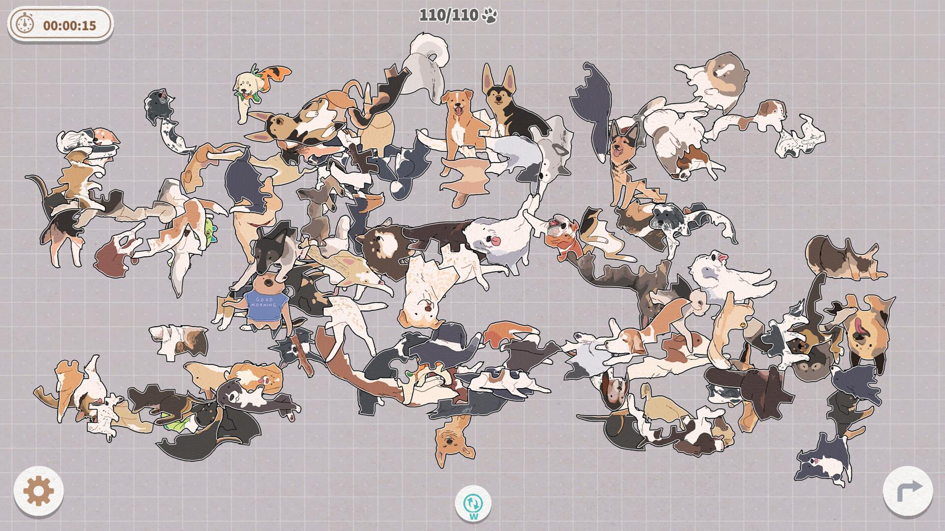 治愈系的狗狗拼图游戏,每一片拼图都是可爱的狗狗。可以自由的调节难度,包含两种有趣的拼图玩法,让数百只狗狗来治愈你吧!