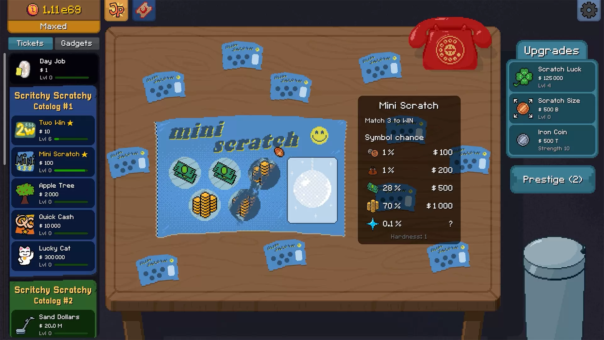 《刮个爽》是一款超级解压、爽感叠加的刮刮乐游戏。购买成叠的刮刮乐彩票,刮出大奖后渐渐解锁自动刮奖功能,再一路冲击巨额头奖。不小心玩上头的你会稳扎稳打,还是会选择梭哈一把?
